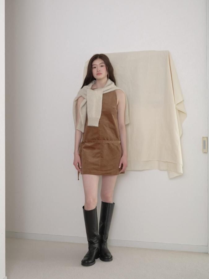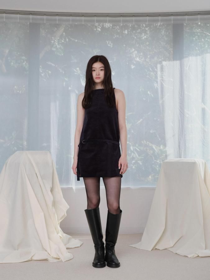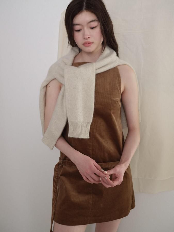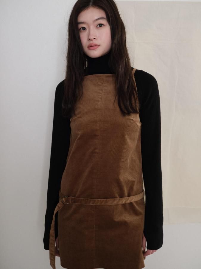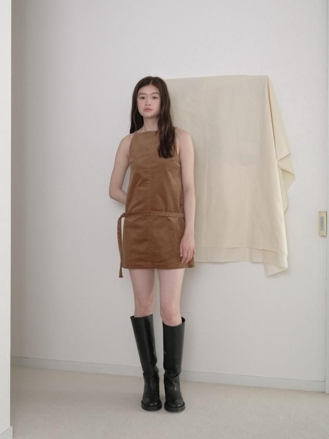 秋らしさを感じさせてくれるコーデュロイ生地を使用したチュニックワンピ。しっかりとした厚みがあり、透け感も気にならず、安心して一枚で着ていただけます。秋の入り口にはさらりと一枚で、寒さが深まる頃には、タートルニットなどを重ねてレイヤードで、その時々の気分や気候に合わせて、長くコーデを楽しめます。ウエストベルトは取り外し可能。目線が上にいくので、スタイルアップ効果も抜群。バレエシューズやブーツなどと合わせるのもオススメです。後中心ファスナーあき。