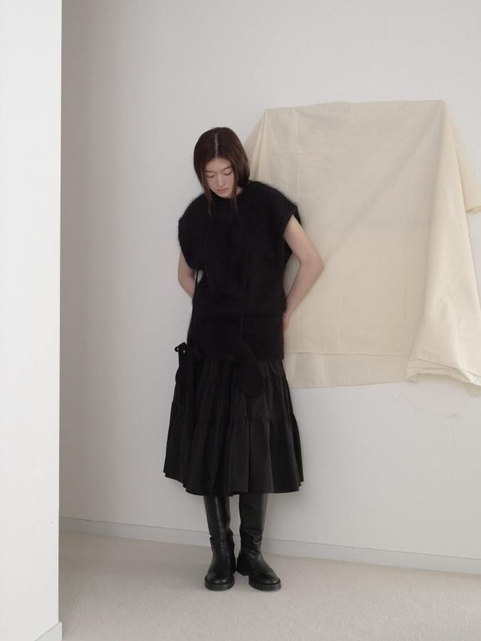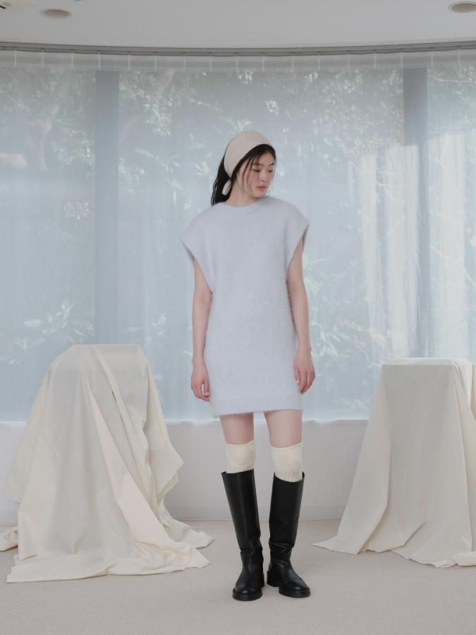 しっとりとした光沢と、長く繊細な毛足が美しいアンゴラニットチュニック。まるで空気をまとっているかのような、やわらかく上品な雰囲気を演出してくれます。糸そのものの魅力が引き立つよう、デザインはあえてシンプルにしつつ、バックスタイルは大胆にあきをプラス。オーバーサイズのトップスとしても、チュニックワンピとしても着用していただける大人な一枚です。